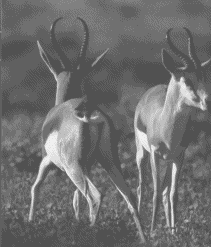 1.) A small brown and white gazelle of southern Africa, that is capable of leaping high in the air.